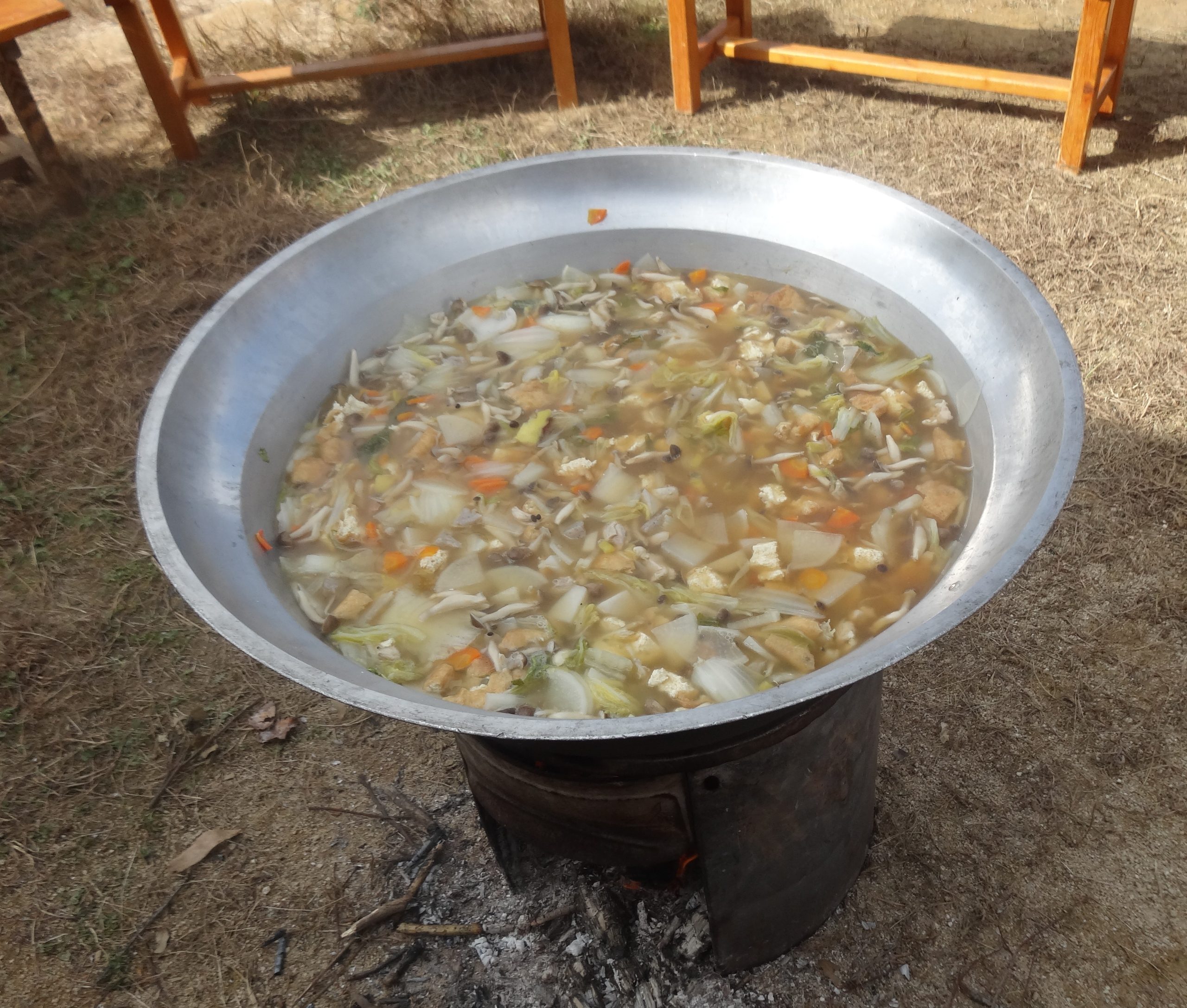 大きなお鍋でたくさんの具材を入れて煮込みました。「まだかな~~!」